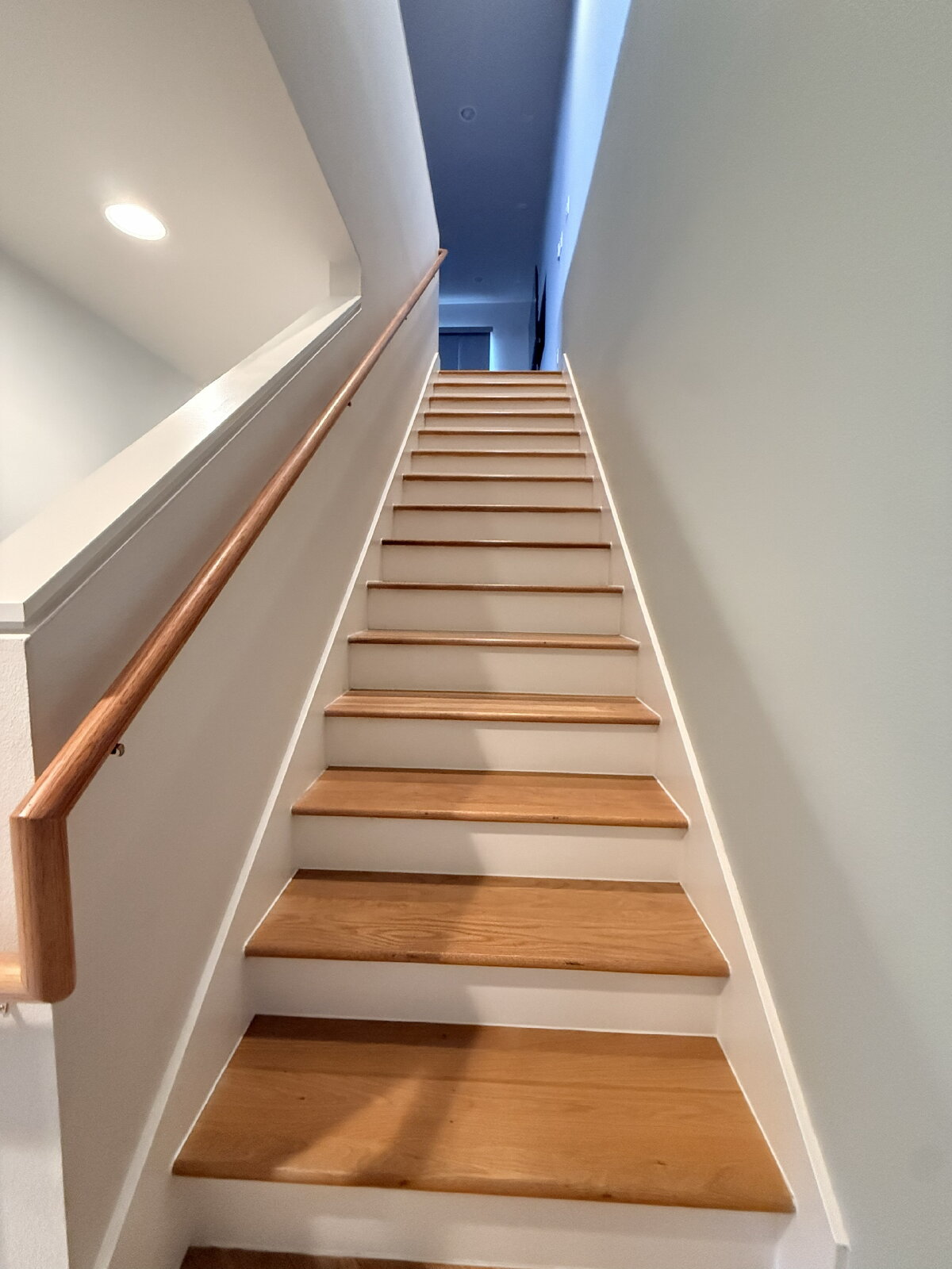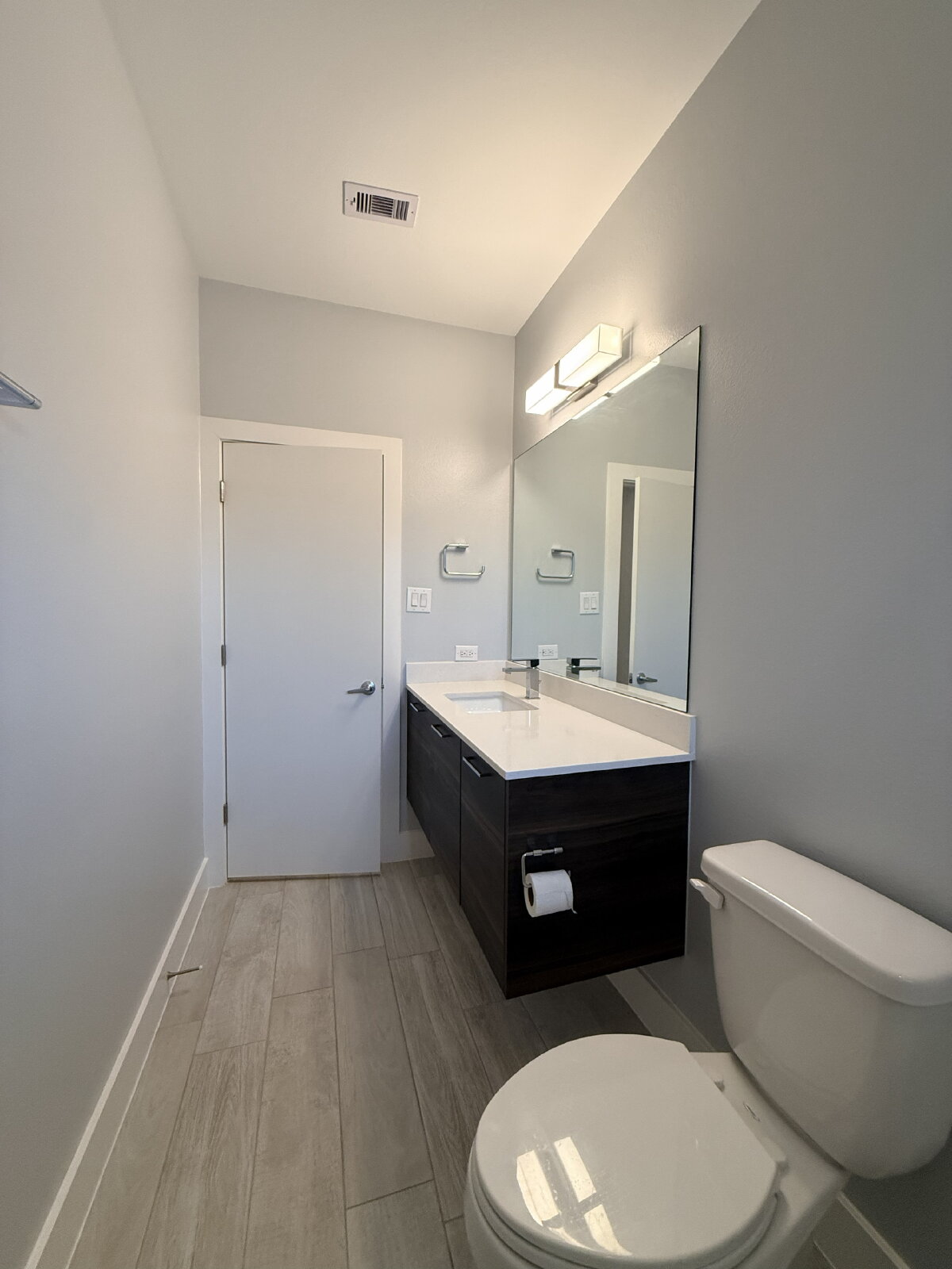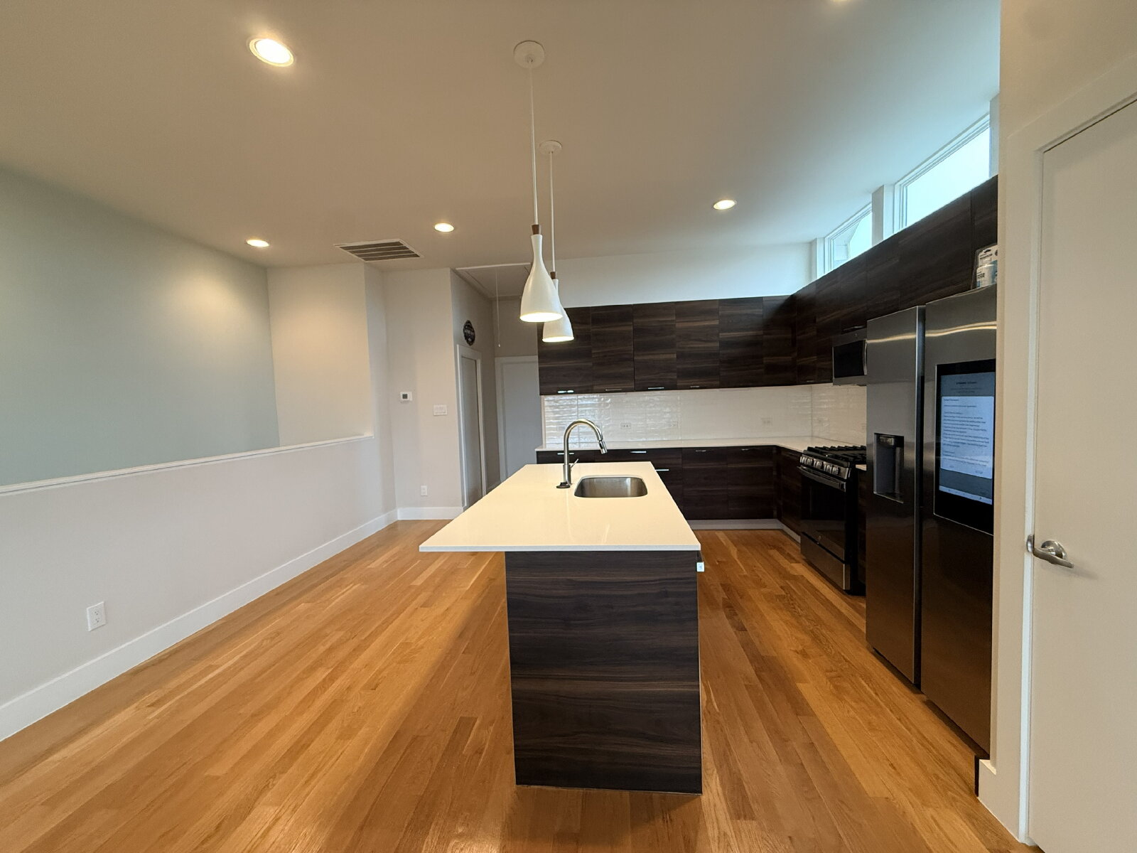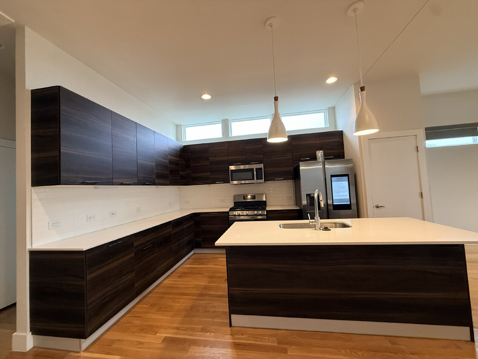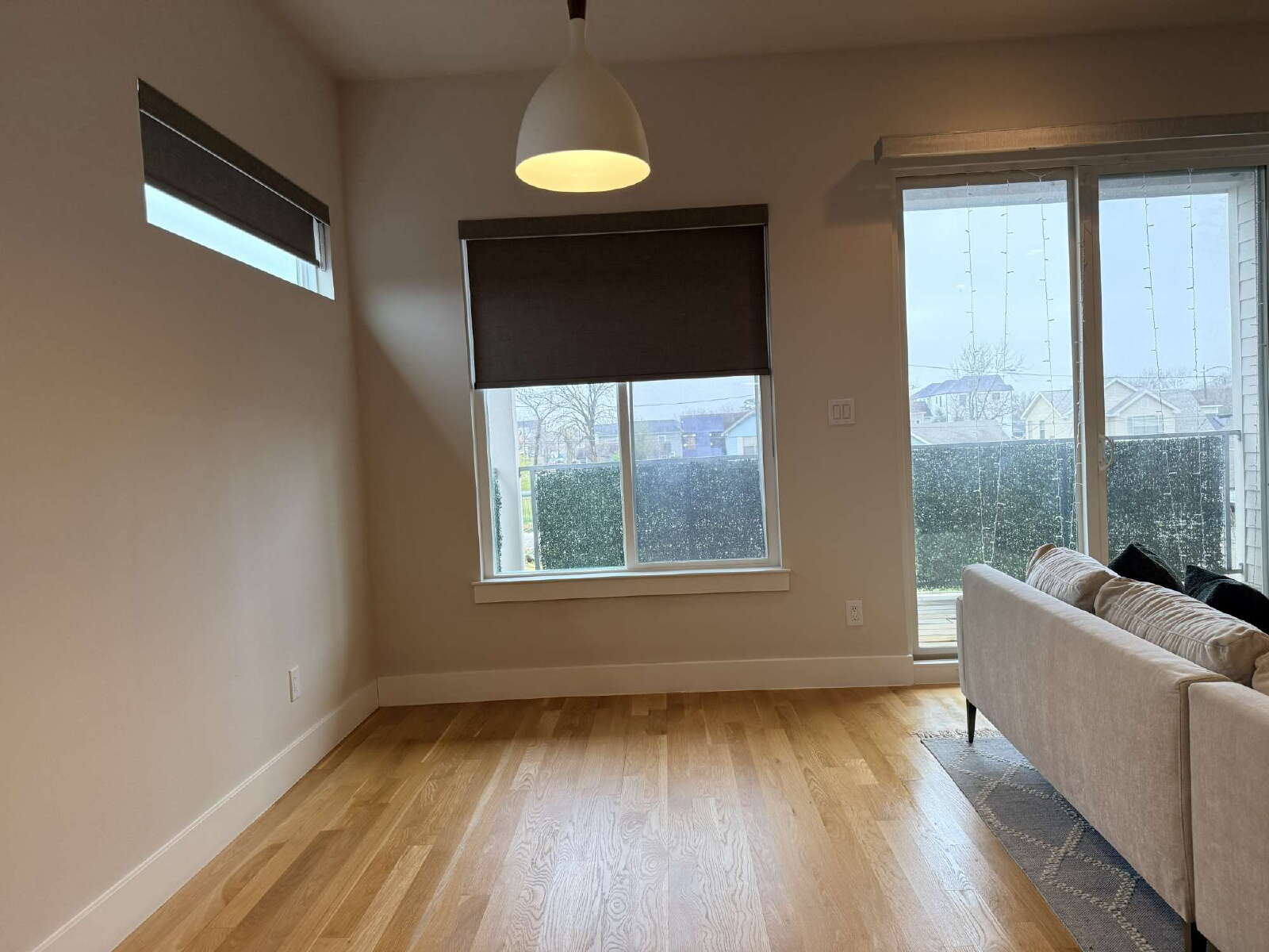 Property features spacious layout spread over two thoughtfully designed levels. Master suite is located on the second floor with a private balcony, en-suite bathroom with soaking tub and separate shower, and ample closet space. Two additional bedrooms on the first floor, one is set up as a home office with a computer desk and monitor, ideal for remote work or study. Modern living area on the second-floor features open-concept kitchen, dining, and living room is perfect for entertaining, featuring stylish finishes, contemporary furnishings, and a second balcony with city views. Two car garage features electric car charging port.